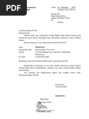 Contoh Surat Permohonan Bantuan Rumah Jabatan Zakat
